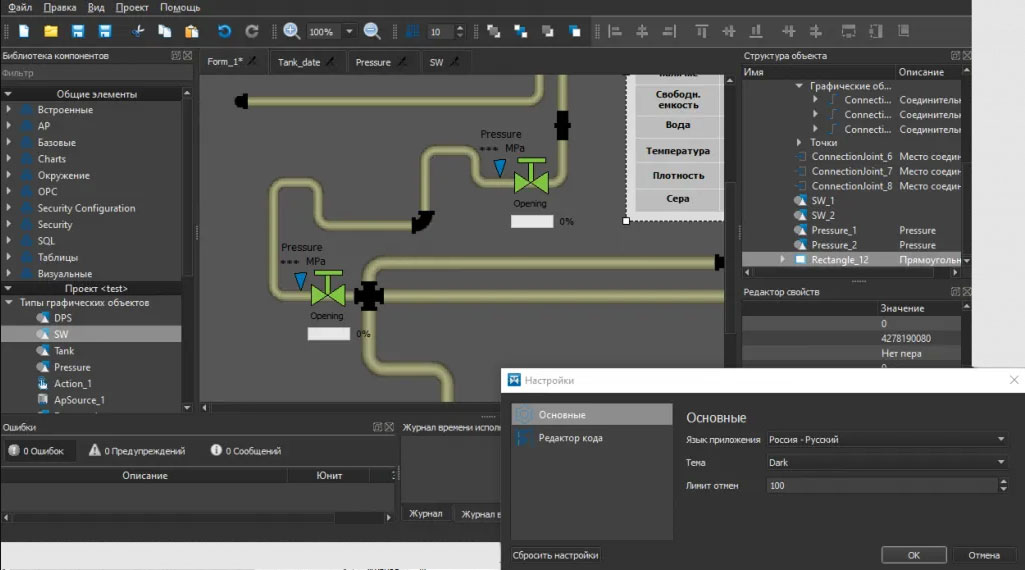 6. Человеко-машинный интерфейс: алгоритм создания проекта; описание основного инструментария HMI; основные примитивы; взаимодействие с сервером ввода-вывода; средства диагностики и отладки; глобальные объекты; типы; алгоритмическое расширение функционала; дочерние формы; навигация; сообщения; графики